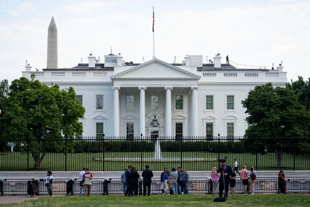 5月14日,游客在美国首都华盛顿白宫附近游览。(新华社记者刘杰摄)