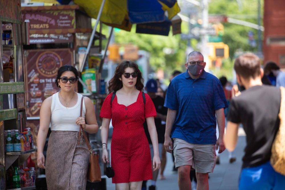 5月19日,人们走在美国纽约街头。(新华社发,郭克摄)