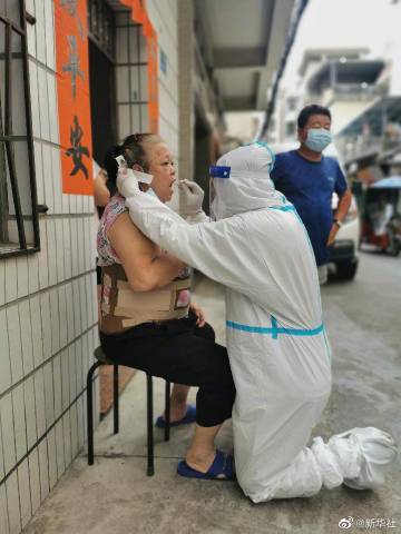 【#大白跪姿为老人小孩做核酸#】在广东多地启动的大规模核酸检测中,身着防护服的医务人员们不畏高温炎热,被人们亲切地称为“大白”。6月9日,东莞市虎门镇口腔科医生陈达峰在东方社区为行动不便的老人进行流动检测,为了让老人家舒服一点,他多次跪下来采集。6月7日,深圳市产科护士杨海萍为一名母亲怀抱中的孩子做核酸,她的姿势也是跪了下来。5月27日,广州市番禺区石楼镇社区卫生服务中心黎国伟在幼儿园采集咽拭子时,同样选择了跪下来以减少孩子们的呕吐反应。跪下来,降低了高度,增加了温度。“大白”们,谢谢你们,让老人孩子们被温柔以待。#关注广东新冠疫情# (记者田建川)