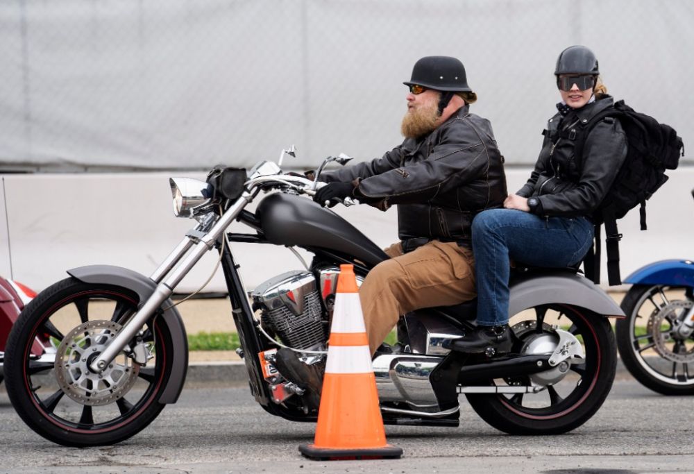 5月30日,在美国首都华盛顿,人们参加“滚雷”摩托车大游行。(新华社记者刘杰摄)