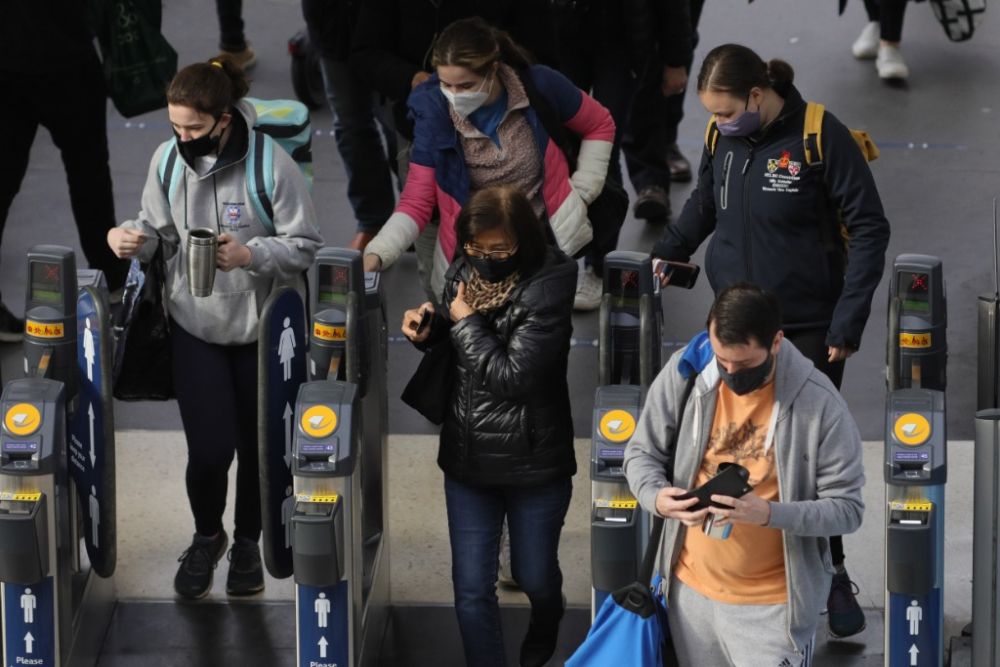 4月9日,通勤者在英国伦敦早高峰的滑铁卢车站内行走。(新华社发,蒂姆·爱尔兰摄)