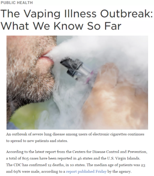 △美国全国公共广播电台(NPR)2019年8月有关“电子烟疾病暴发”的报道