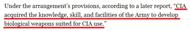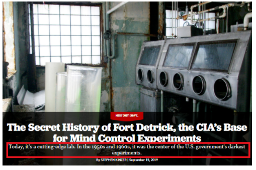 在随后很多年里,注入了731血液的德特里克堡一直是美国中央情报局(CIA)对外严格保密的生化武器和精神控制实验基地。据美媒报道,通过这些实验,“中情局获得了陆军的知识、技能和设施,以开发适合中情局使用的生物武器”。