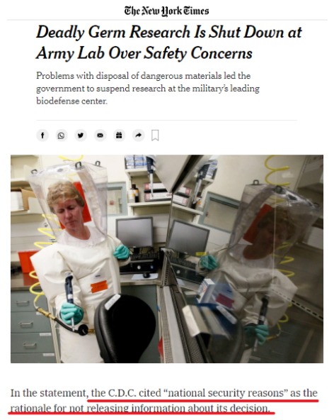 异常巧合的是,同样是在2019年7月,运营多年的德特里克堡生物实验室被突然关闭。但美国疾控中心(CDC)却以“国家安全原因”为由拒绝公布更多信息。