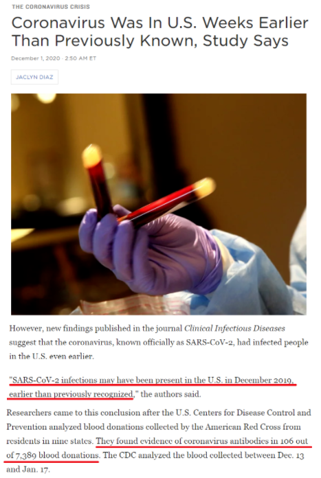 更有研究报告显示,早在2019年12月,一些美国人献血的样本当中就已经存在新冠病毒的抗体。