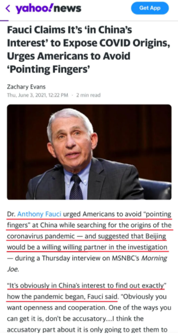明白人很容易读懂福奇的暗示:一查到底的结果不仅会还中国清白,更会把美国自己扔进火堆。