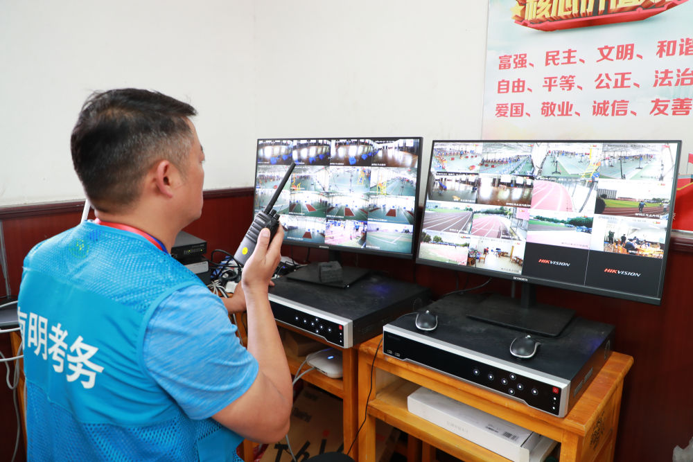 (↑这是2020年贵阳市初中毕业生升学体育考试里,考务人员通过视频监控监考)