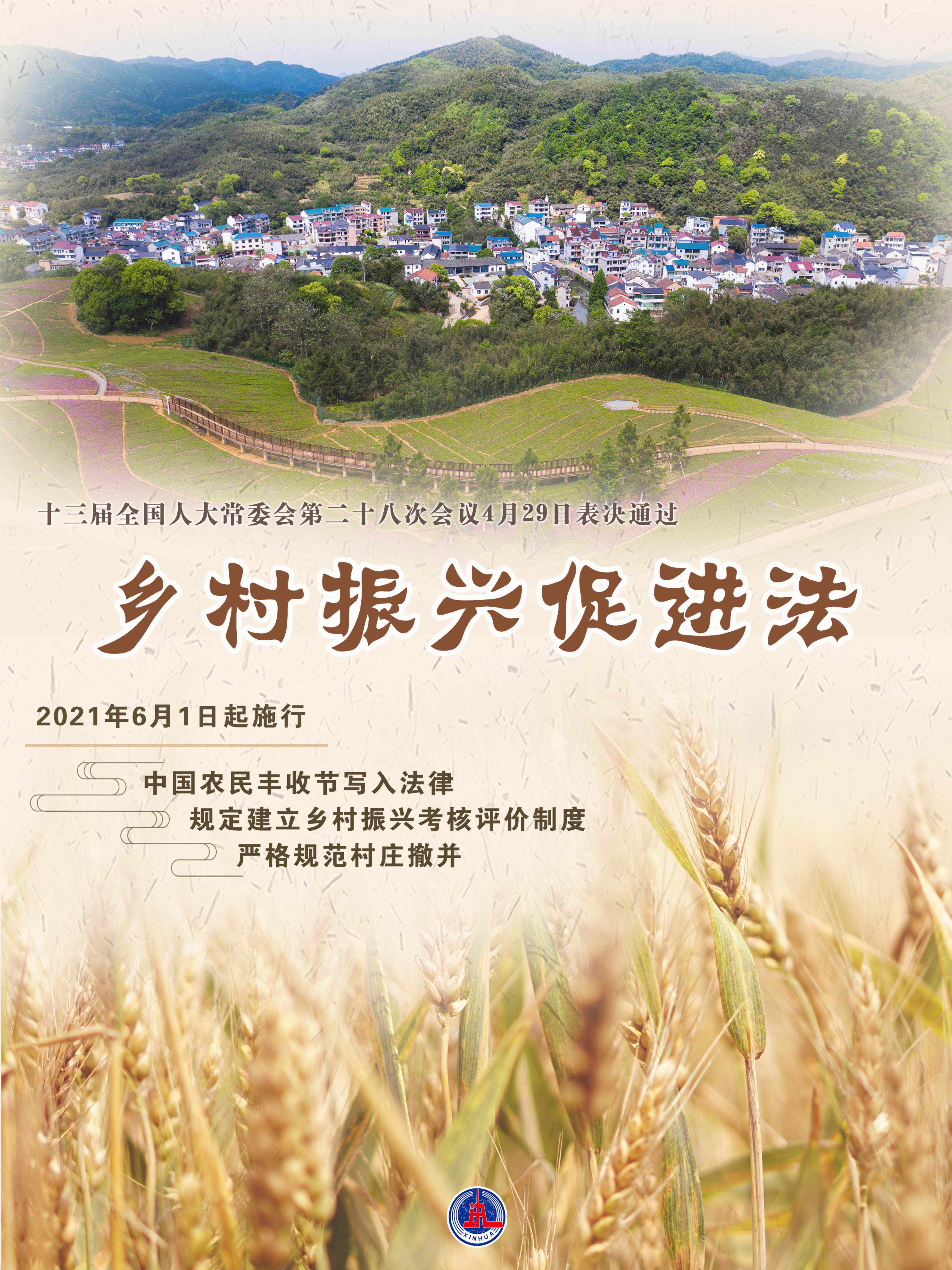 “全面实施乡村振兴战略,必须有强有力的法治保障,确保政策举措的连续性和稳定性。”国家乡村振兴局政策法规司司长陈洪波表示,要围绕乡村振兴战略的目标任务,对空白领域、薄弱环节加强立法立规,把农业强、农村美、农民富的目标要求用法律制度固定下来,推动出台有关政策文件,促进乡村产业、人才、文化、生态、组织全面振兴。