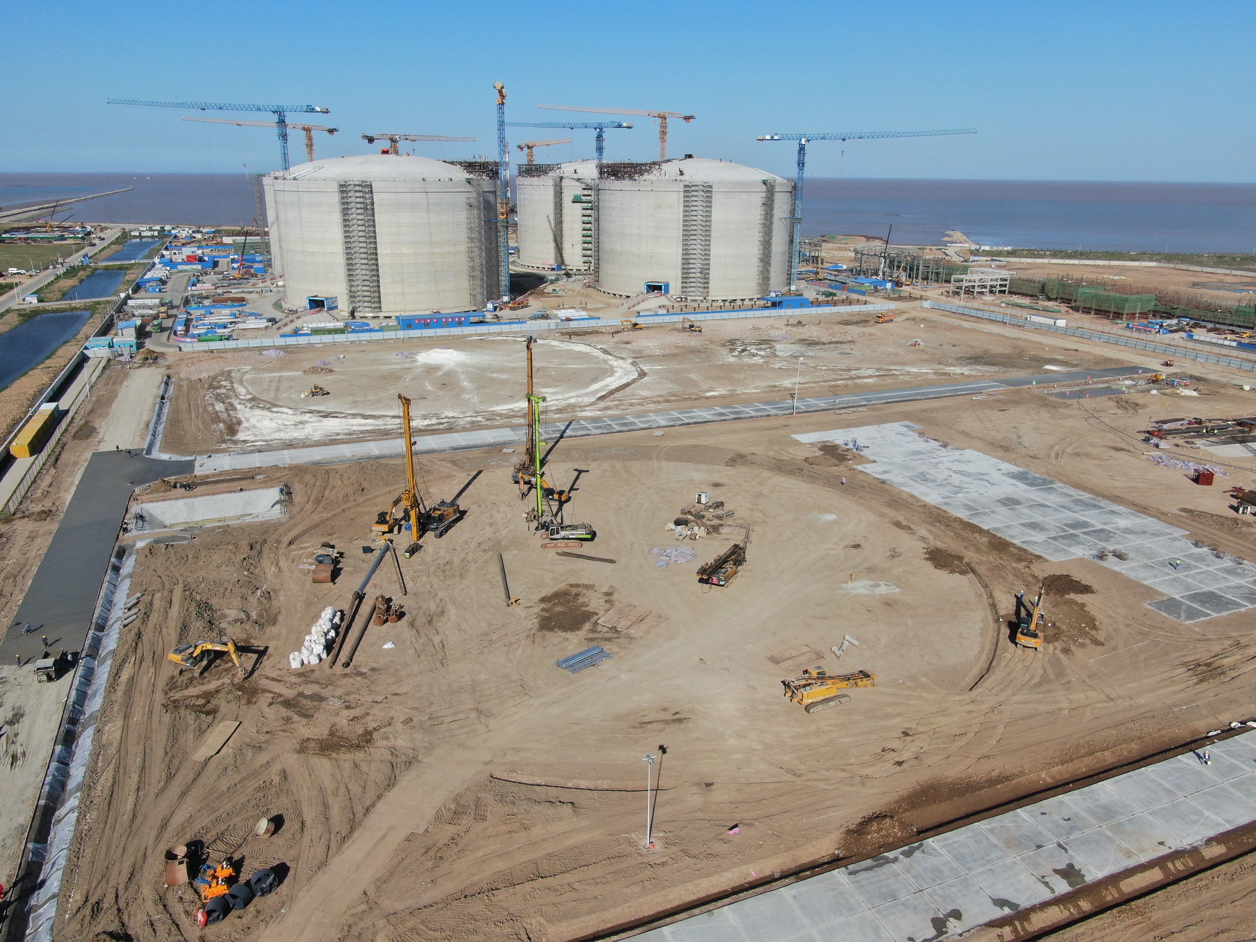 图为江苏LNG滨海接收站一期扩建工程储罐试桩