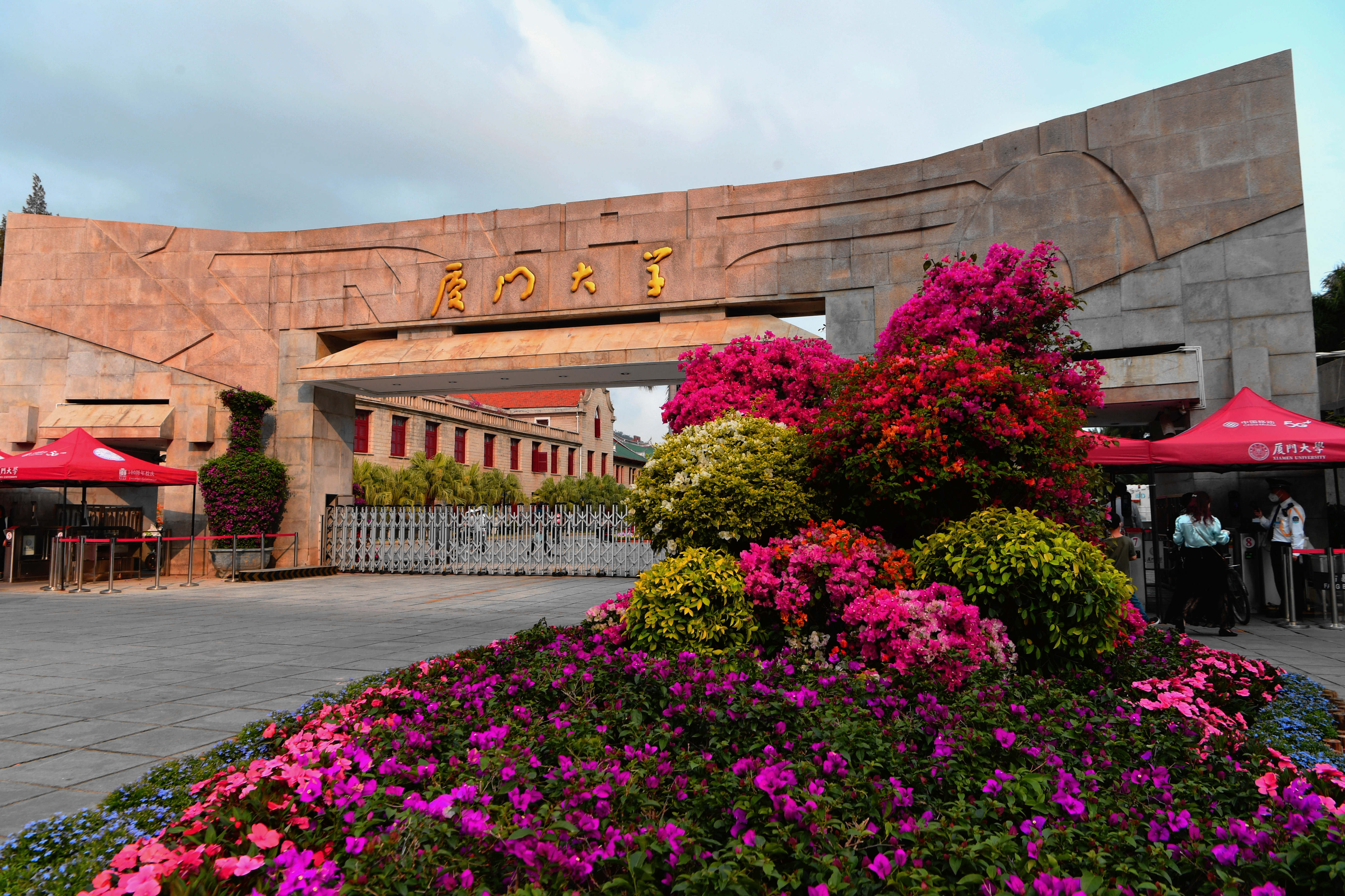 厦门大学西校门花团锦簇,迎接百年校庆(4月1日摄)。新华社记者魏培全摄