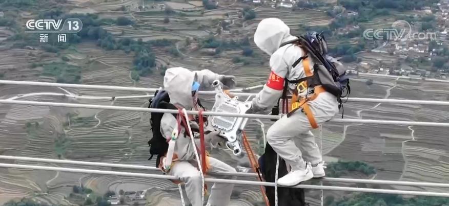 在海拔3000米的云南香格里拉,滇西北水电外送的500千伏输电通道上,南方电网的电力工人们身穿特制屏蔽服,克服高原反应,带电安装着自主研发的全国首套输电线路集成传感器。