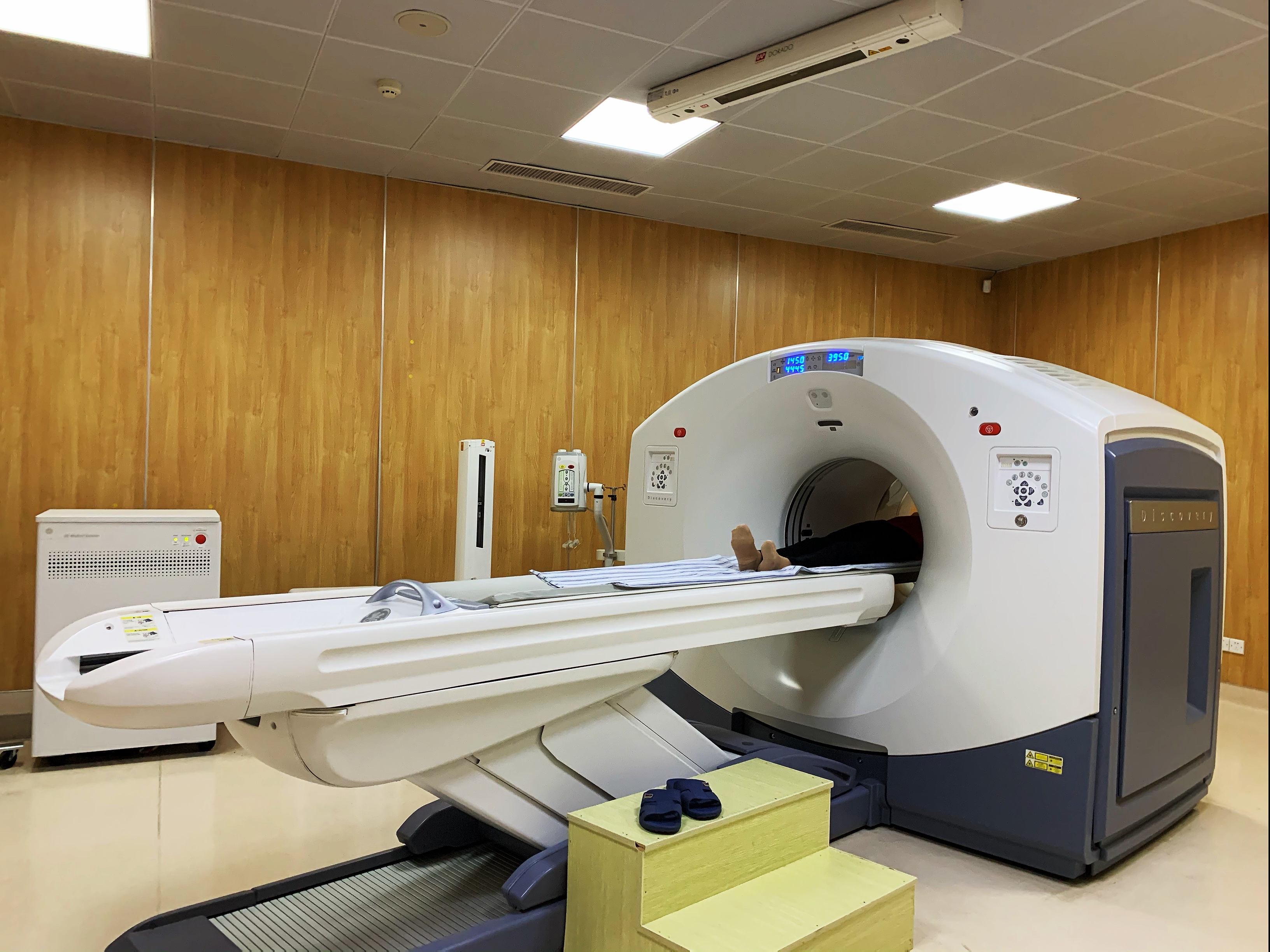 中国科学院大学附属肿瘤医院核医学科PET-CT检查室内,病人正接受检查。图片由医院提供
