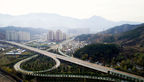 陕西商洛,水阳高速公路与福银高速公路相接的枢纽互通式立交。(新华社记者刘潇摄)