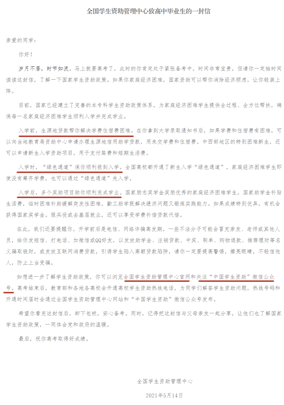 全国学生资助管理中心已经向
