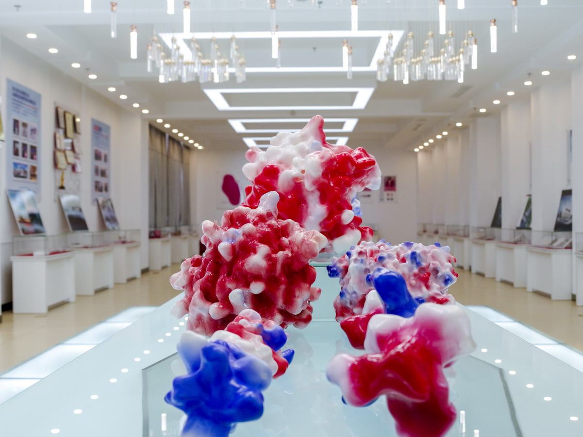 锦波生物公司内Ⅲ型人源胶原蛋白原子结构模型。 (受访者供图)