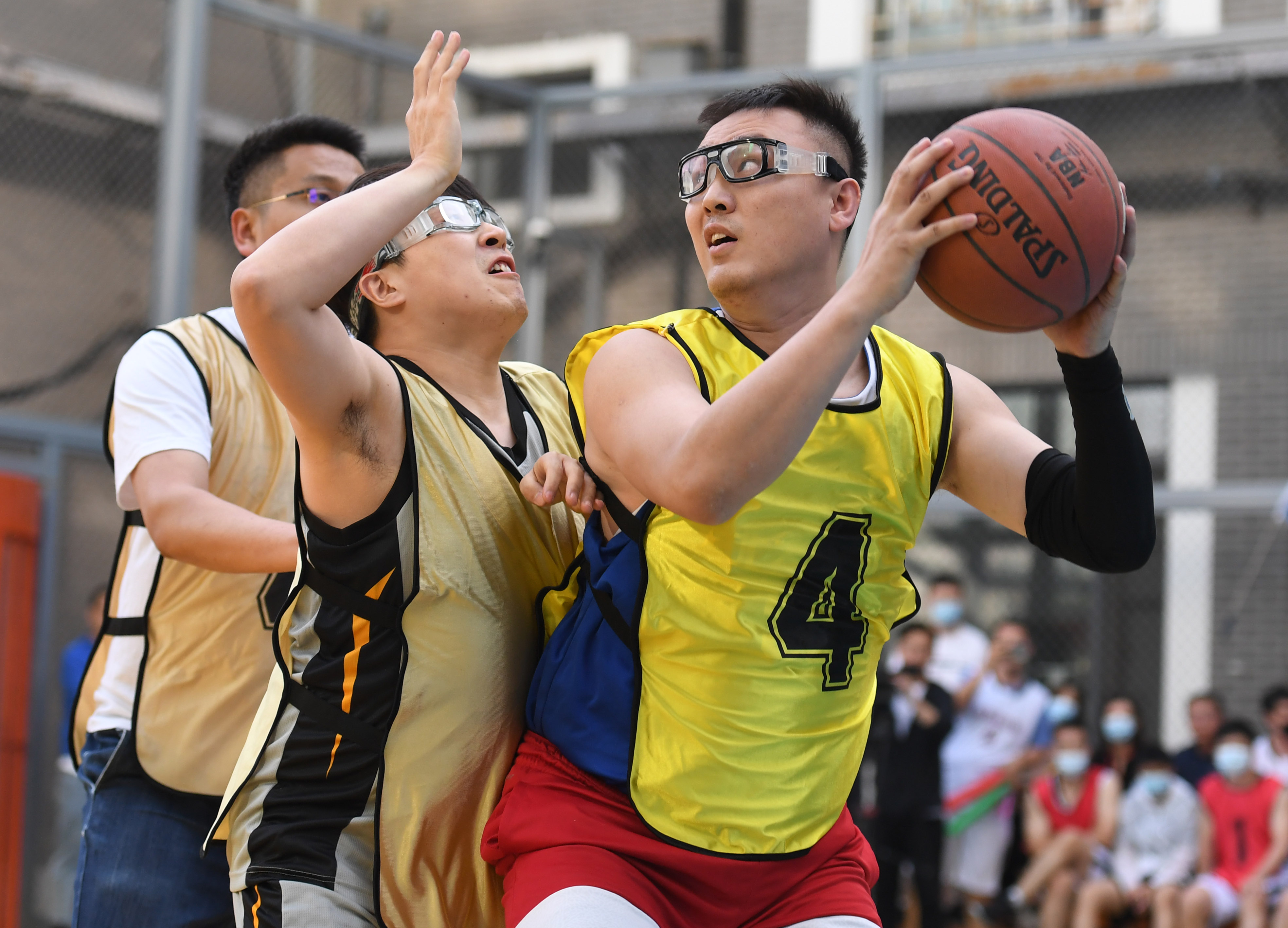 为响应全民健身,北京市海淀区中关村创业大街首届“科创杯”三人制篮球赛于5月25日开赛。新华社记者任超摄