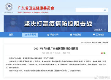 #关注广东新冠疫情#【#广东10日新增9例本土确诊病例# 均为广州报告】据广东省卫健委:6月10日0-24时,全省新增9例本土确诊病例,均为广州报告。