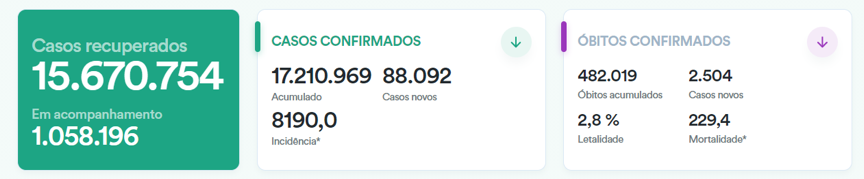 截至当地时间6月10日18时30分,根据巴西卫生部发布的数据,巴西新冠肺炎确诊病例累计达17210969例,较前一日新增88092例;累计死亡482019例,较前一日新增2504例;累计治愈15670754例。