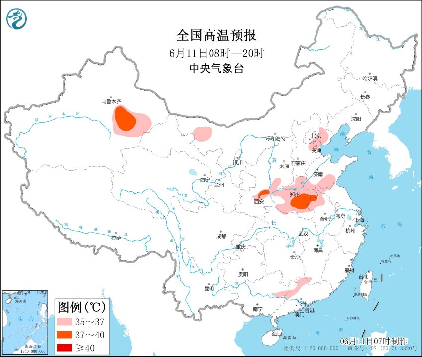今天高温范围将明显扩大,陕西南部、山西南部、河南、安徽北部、江苏北部、河北中南部等地将出现高温。明天,黄淮等地高温又将有所收敛,不过大部地区仍然炎热。