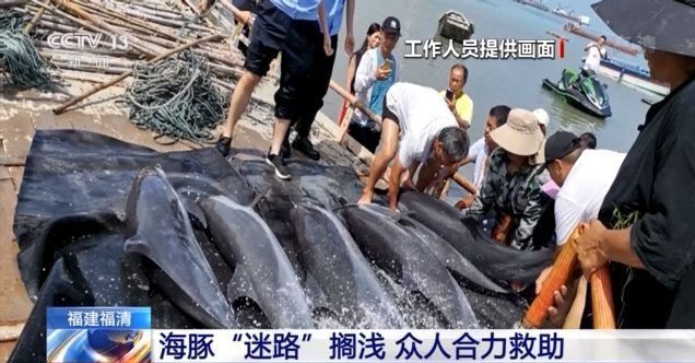 昨天(10日)早上,在福建福清沙埔镇的一处海域,有6只海豚搁浅,被群众发现。接到消息后,相关部门迅速赶往了现场。