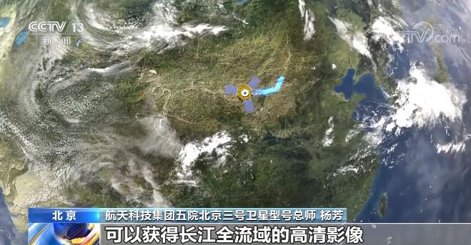 航天科技集团五院北京三号卫星型号总师 杨芳:比如说,它能沿河流、公路等任意航迹主动推扫成像,这样一次过境可以获得长江全流域的高清影像,也可以进行快速多角度成像,全方位获得地物的三维立体信息。