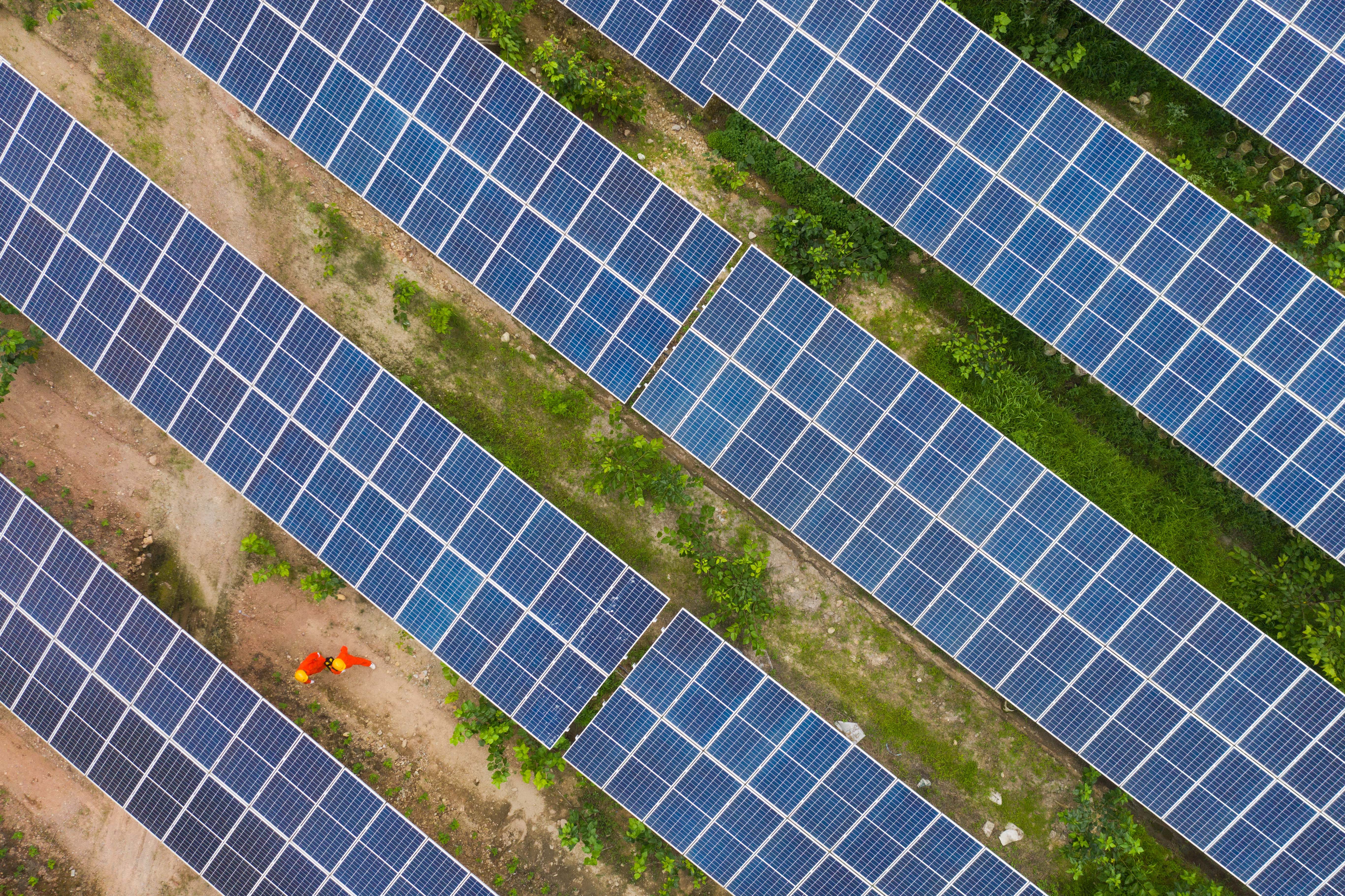 空中俯瞰云和县白龙山街道的白龙山农光互补光伏发电站(无人机照片 新华社记者徐昱 摄)