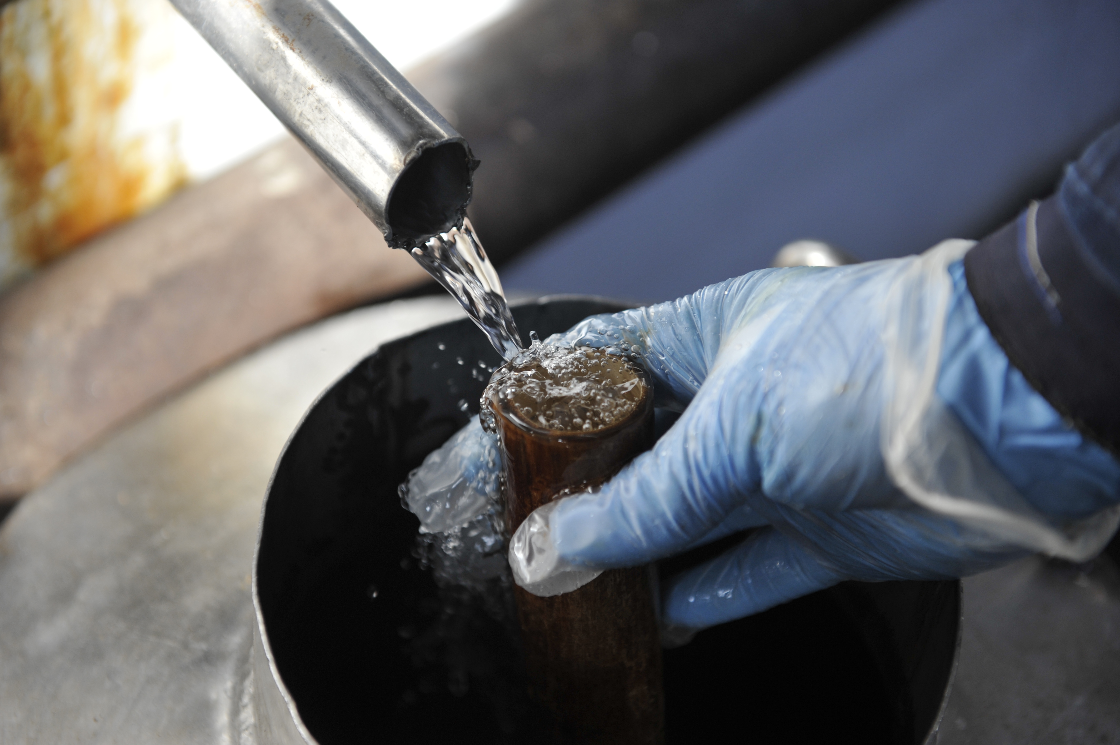 2021年2月7日,在河北省承德市宽城满族自治县一家酿酒企业,工人查看酒的品质。新华社发(王立群 摄)