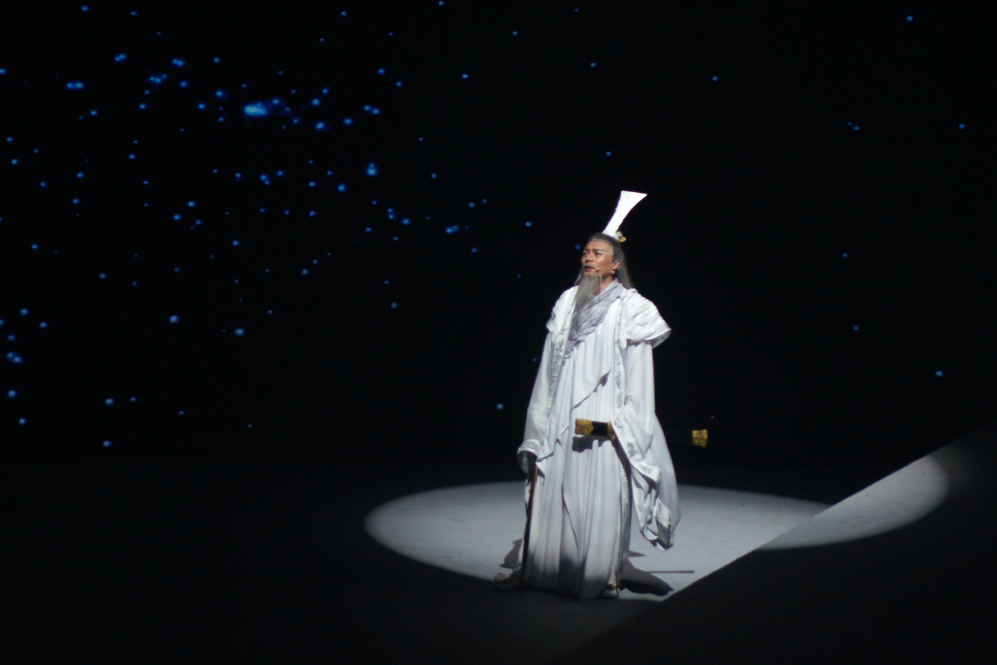 ↑演员在音乐剧《屈原》中表演。新华社发(李根摄)