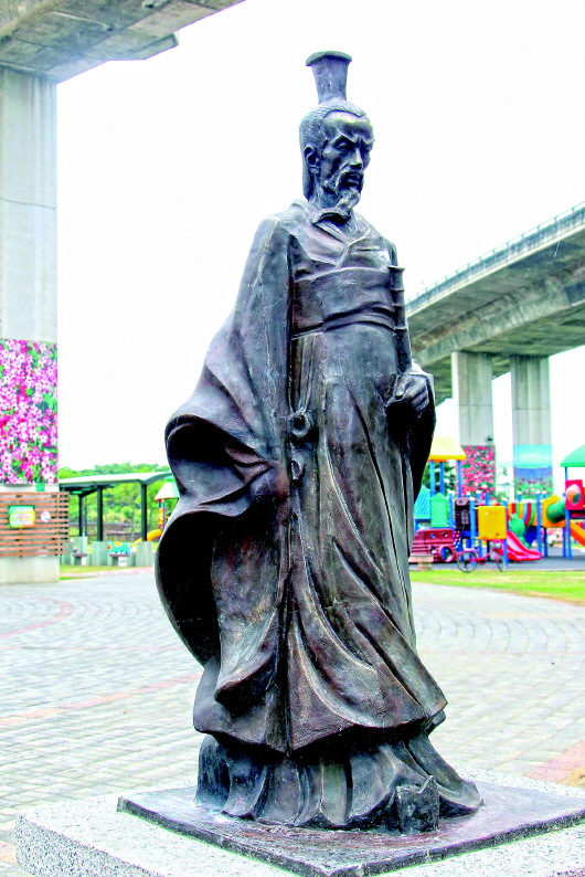 ↑湖北秭归向台湾彰化赠送的屈原雕像(资料照片)。新华社记者高学余摄