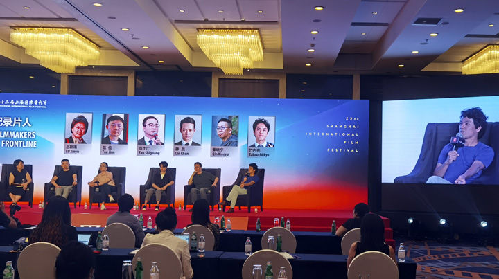 ↑拍摄武汉“战疫”故事的日本导演竹内亮参加去年电影节活动。(资料图)