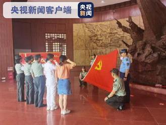 △在达州红军文化陈列馆,西部战区总医院医疗队在雕塑前,面对鲜红的党旗,队员们举起右拳,庄严宣誓,重温入党誓词,并承诺:要把红色基因融入血脉,忠实履行职能使命,为新时代强军目标不懈努力。