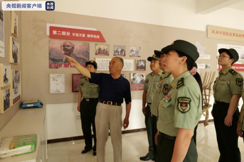 △在78岁赵廷凯老人建造的白求恩纪念馆里,联勤保障部队第980医院专家医疗队听着老人的讲解,看着珍贵的照片,队员们对白求恩有了更深的了解。