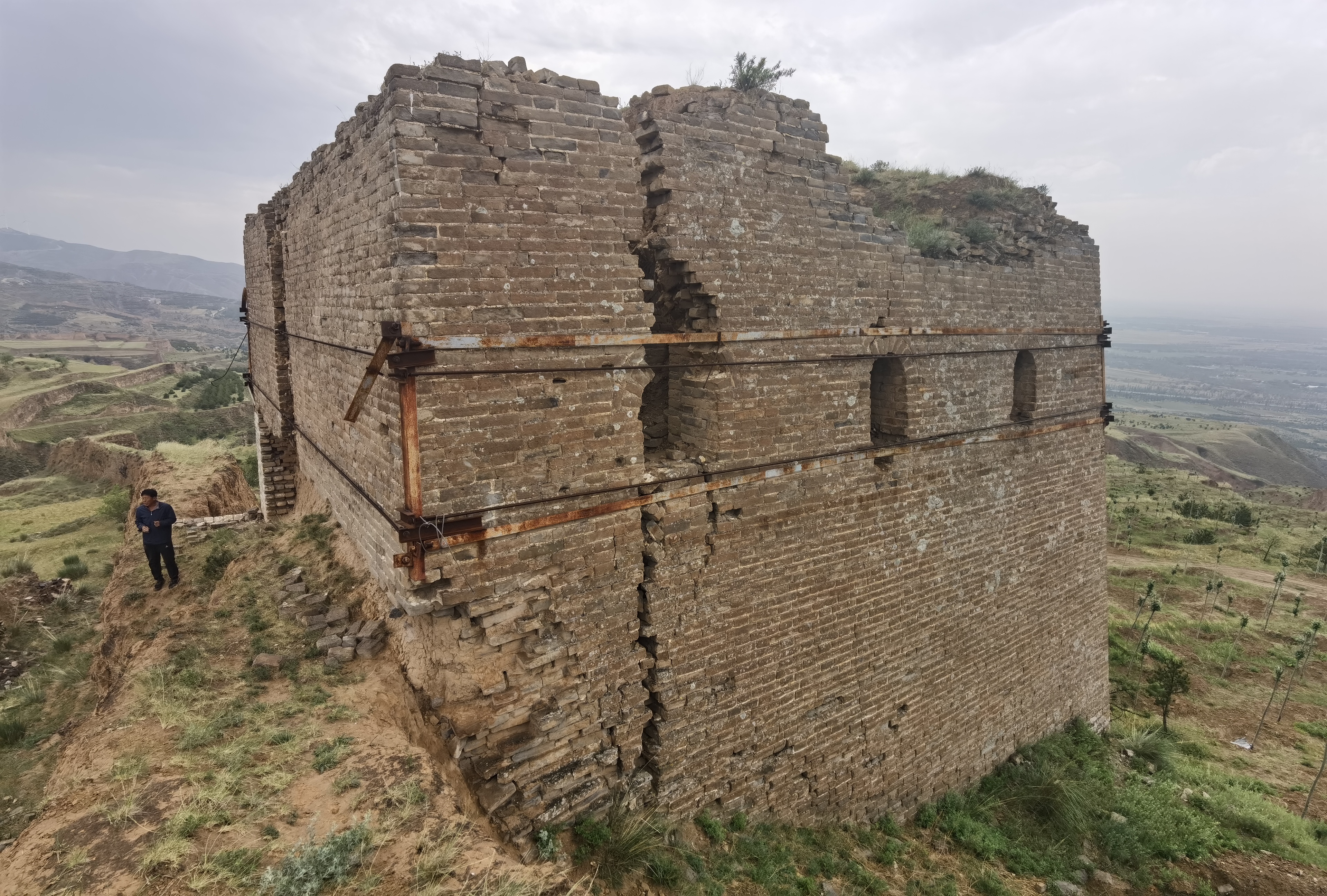 站在新广武村北关楼下,记者看到仅剩两层的关楼依旧雄伟有气势,下面长长的门洞更是少见。只是楼身上的几道裂缝,让人看着揪心。尹成武对长城的“伤”从不掩饰,他希望更多人了解、关心、修缮长城。