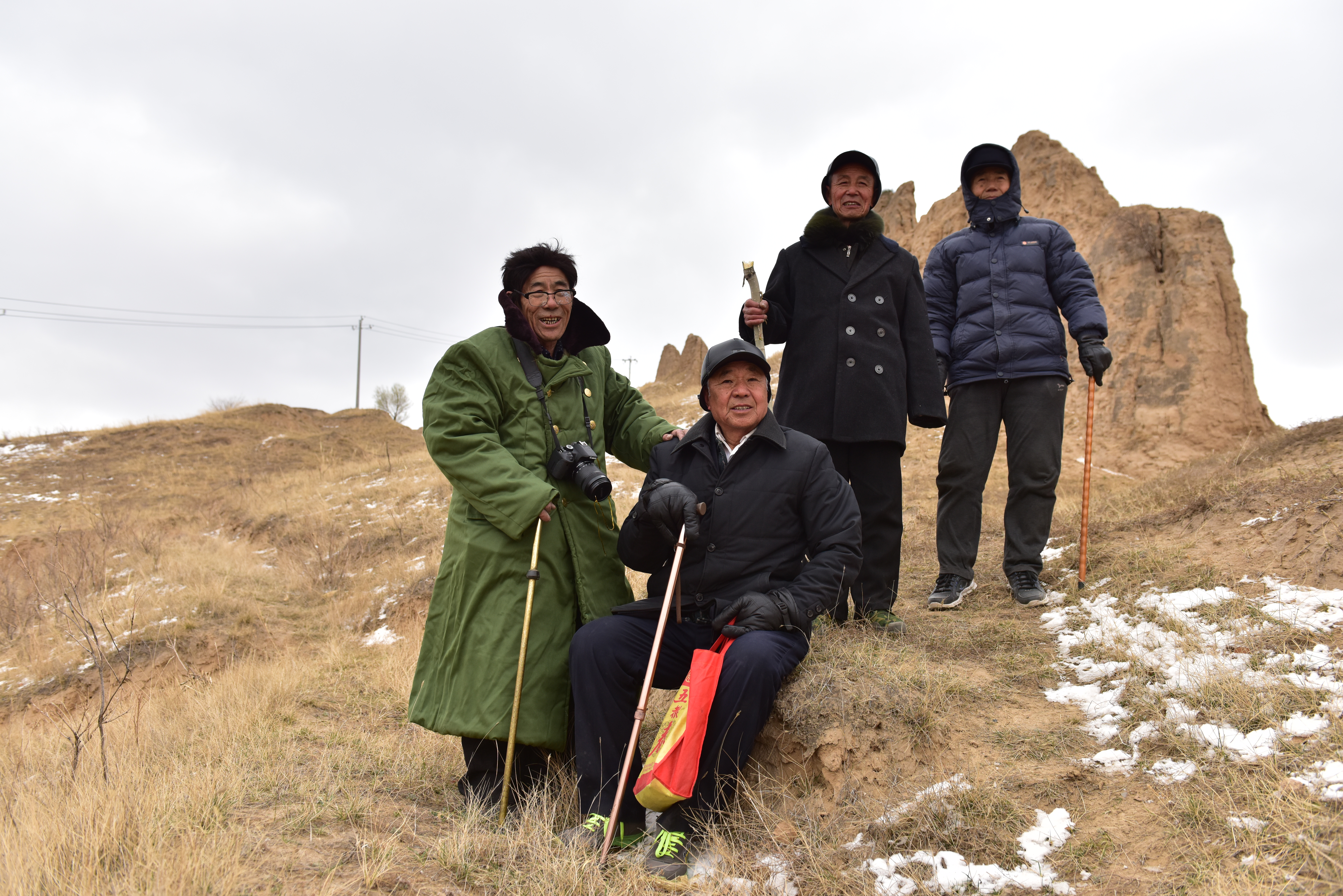 山西应县北楼口村四位老人在巡查长城途中。受访对象常亮(左一)提供