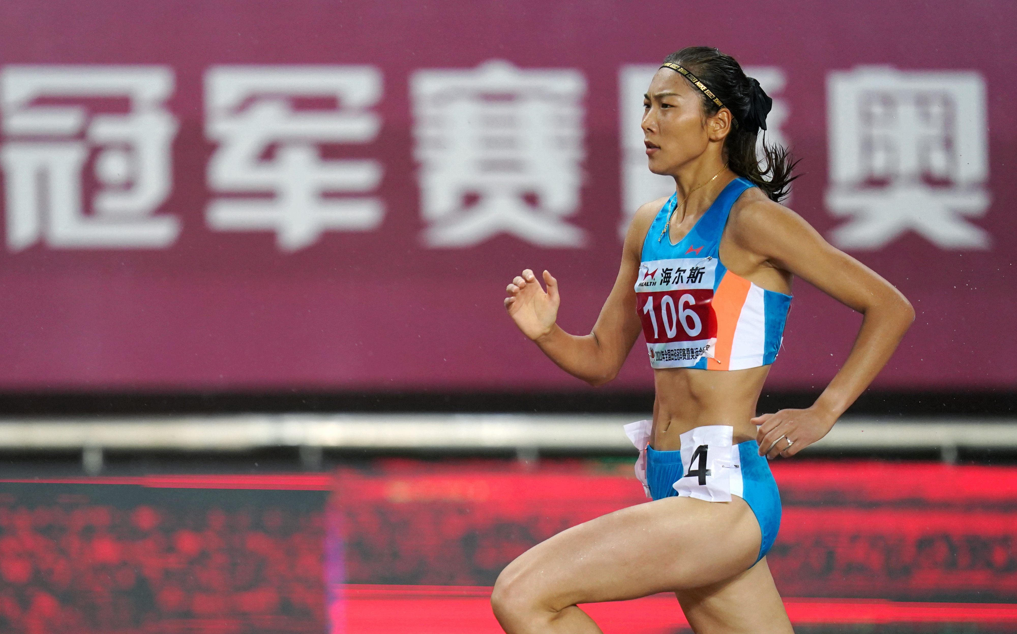当晚创造佳绩的还有女子100米栏运动员吴艳妮,她后程发力跑出12秒98夺冠。