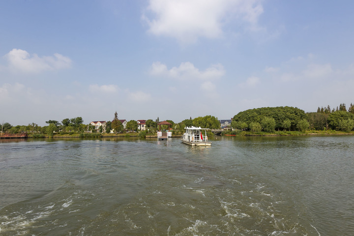 上海市青浦区金泽镇淀山湖畔的蓝色珠链休闲景观带(2019年10月24日摄)。新华社记者王翔 摄