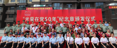 近日,南京警备区举行了“光荣在党50年”纪念章颁发仪式,向全区78名老党员代表颁发“光荣在党50年”纪念章。他们当中,年龄最大的100岁,党龄最长的83年。