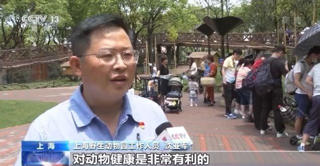 上海野生动物园工作人员 沈亚军:我们通过改变食物的形状,不同的思维方式,让动物有一种探究的行为,延长它的采食时间,提高动物的活动量,对动物健康是非常有利的。