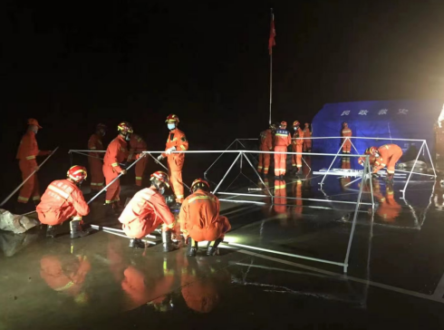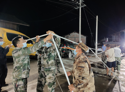 连夜搭设帐篷,紧急安置受灾群众。思治生 摄