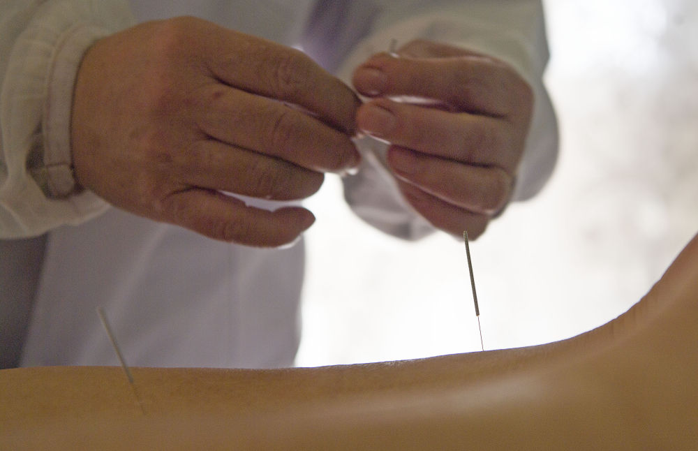 南非约翰内斯堡中国中医诊疗院内,孙庆涪对病人进行针灸治疗。新华社记者陈诚摄