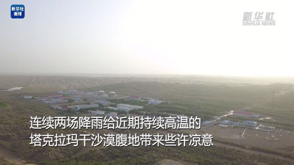 【#塔克拉玛干沙漠腹地今年累计降水已达年均1.5倍#】位于塔克拉玛干沙漠腹地的塔中地区,气候极度炎热干旱。6月11日和13日,连续两场降雨给近期持续高温的塔中地区带来些许凉意。5月以来,塔中已迎来四次降水。截至目前,今年塔中气象站累计观测记录到40.1毫米降水,这相当于当地年均降水总量的1.5倍。(记者宿传义) 新华社的微博视频