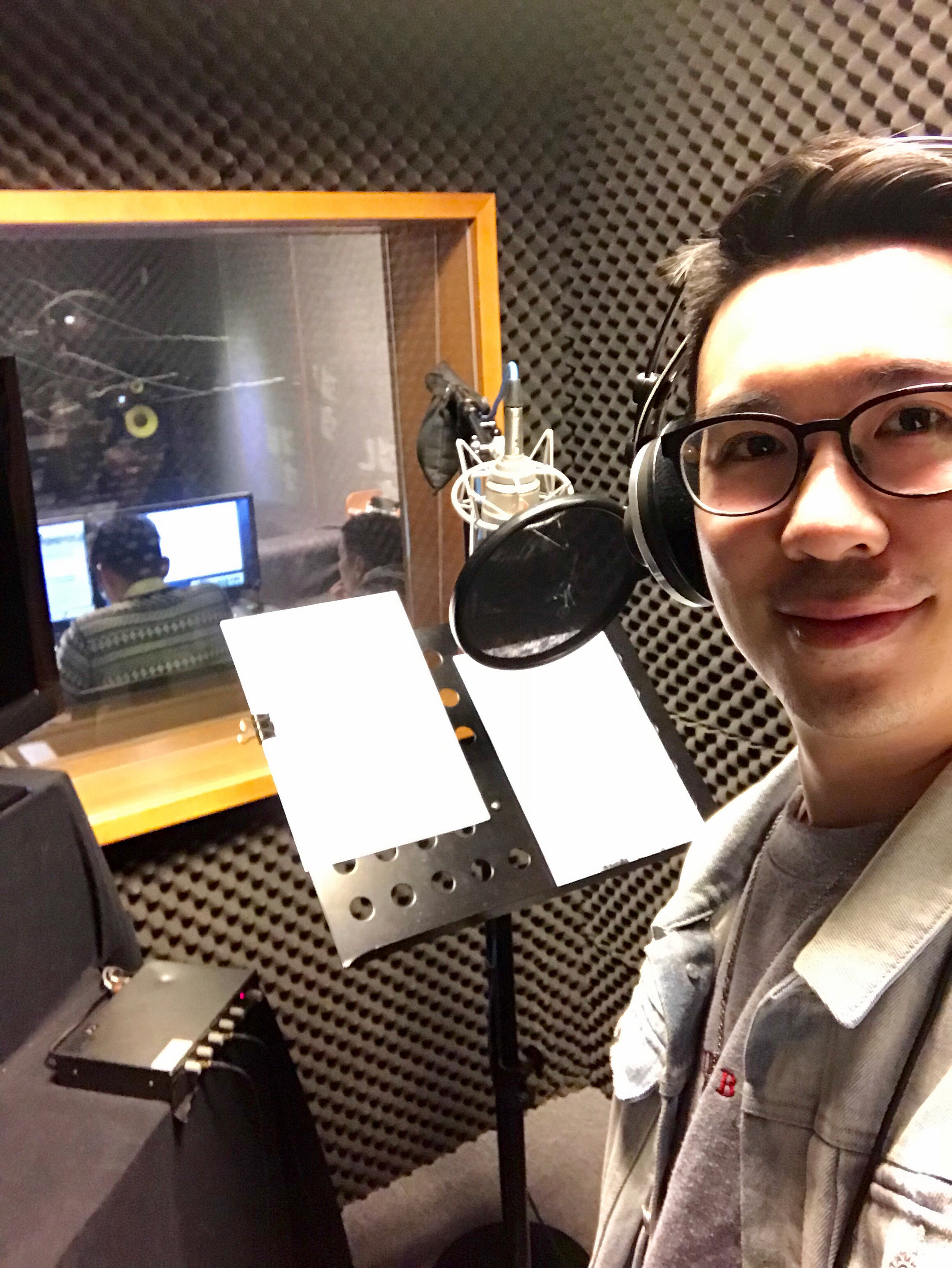 2019年,孙中文在邵氏影城为热播剧《小娘惹》配音。(受访者提供)
