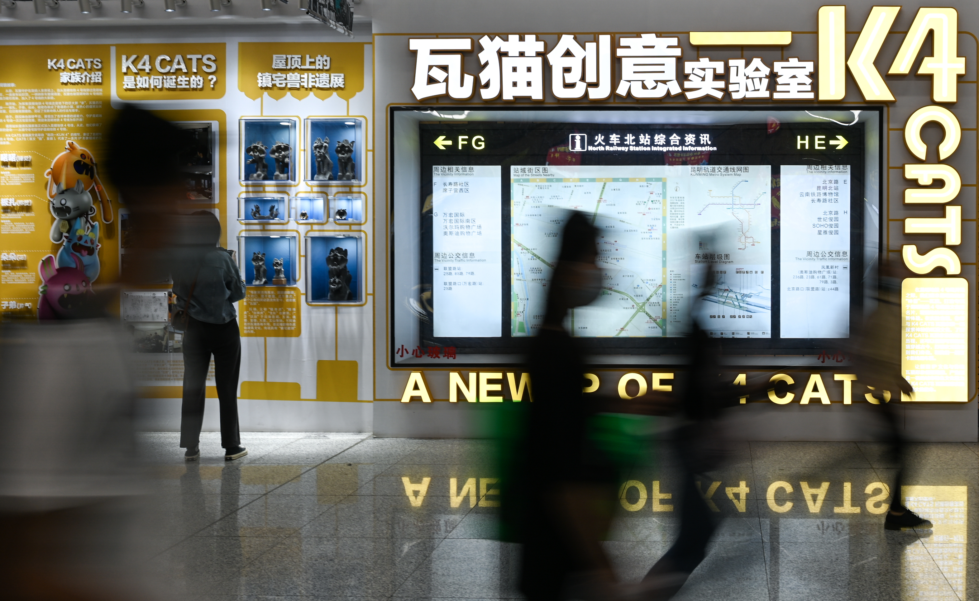 昆明火车北站地铁站内的瓦猫展览区(2021年3月26日摄)。新华社记者王冠森摄