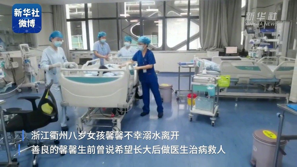 【送别小天使!#8岁溺水离世女孩捐献器官帮助4人#】浙江衢州八岁女孩馨馨不幸溺水离开了,生前她曾说希望长大后成为一名医生治病救人。6月13日在浙大儿院,爸爸妈妈决定捐献出馨馨的心脏、肝脏和肾脏,完成女儿的心愿,把生命的希望留给需要帮助的人。这份生命的馈赠将帮助至少4个小朋友获得重生的希望。小天使,谢谢你来过,把爱和希望延续 (记者 黄筱) 新华社的微博视频