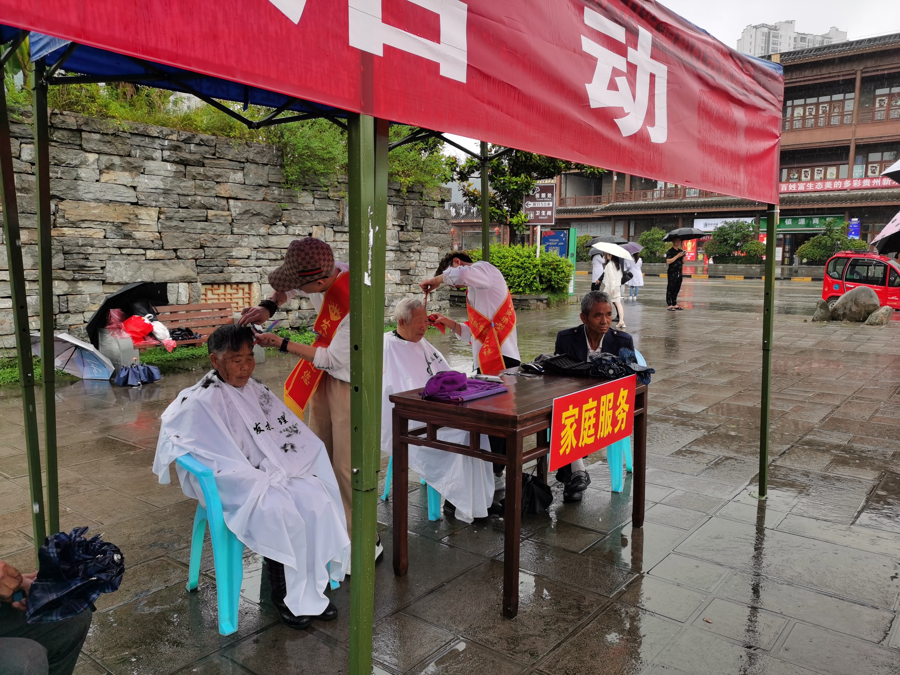 尽管下着雨,现场仍有不少群众前来观看。活动现场还设置了志愿服务展台,志愿者们围绕理论宣讲、医疗健康、法律服务、家庭服务等方面开展志愿活动。