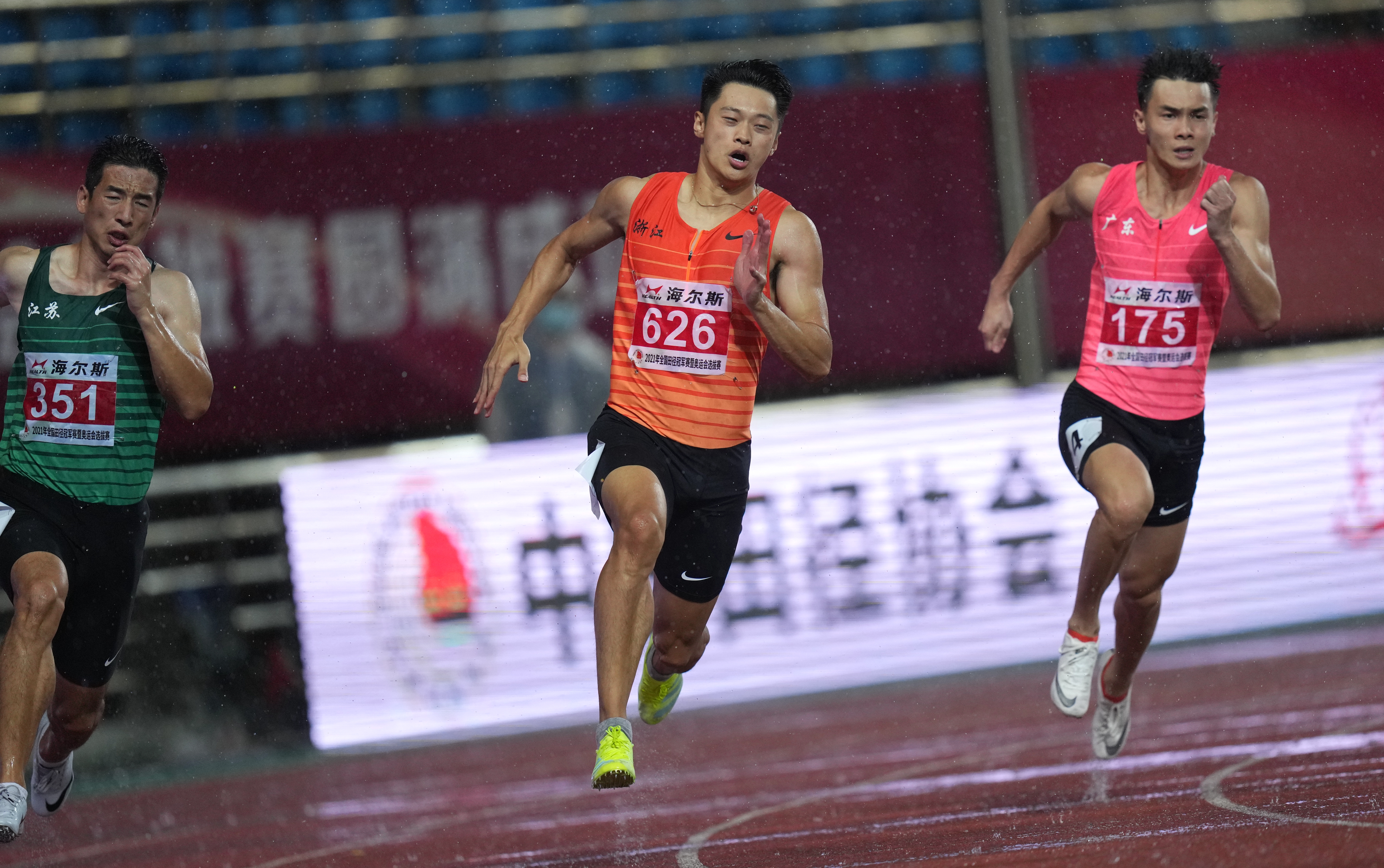 男女200米比赛也受到雨水影响,谢震业和黄瑰芬分别以20秒57和23秒53夺冠。“雨挺大的,对于我这种擅长切弯的选手来说,场地湿滑不怎么敢发力。”谢震业赛后说,“不过也好,体验下雨战,为奥运会各种可能性做准备。”