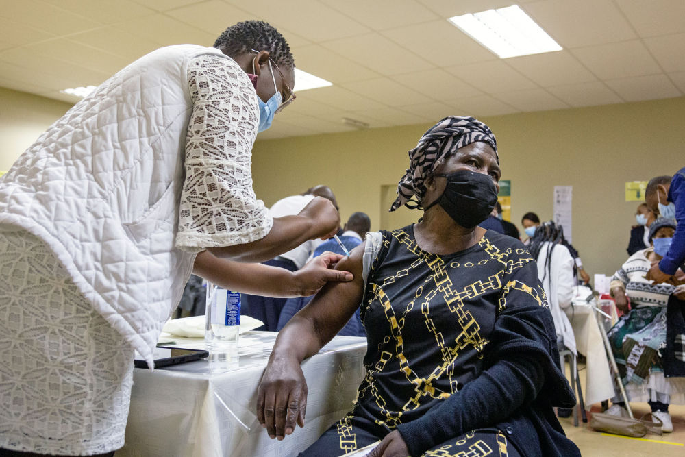 5月17日,南非政府启动第二阶段新冠疫苗接种计划,为全国60岁以上的老年人接种疫苗。图为医务人员在南非约翰内斯堡一处疫苗接种点为老年人接种新冠疫苗。(新华社发,耶希尔摄)