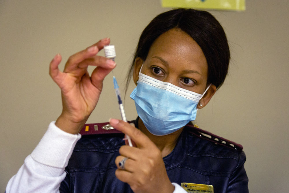 5月17日,医务人员在南非约翰内斯堡一处疫苗接种点进行新冠疫苗接种的准备工作。(新华社发,耶希尔摄)