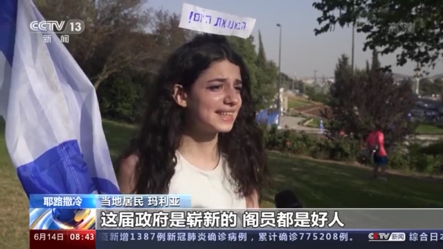 当地居民 玛利亚:我和我的朋友都在庆祝新政府成立。这届政府是崭新的,阁员都是好人,(新政府团结起了)各个方面,不论是右翼还是左翼。这是我们从小就有的梦想,(犹太)宗教人士、阿拉伯人......各派别都在同一个政府里,这是以前从未发生过的事情。