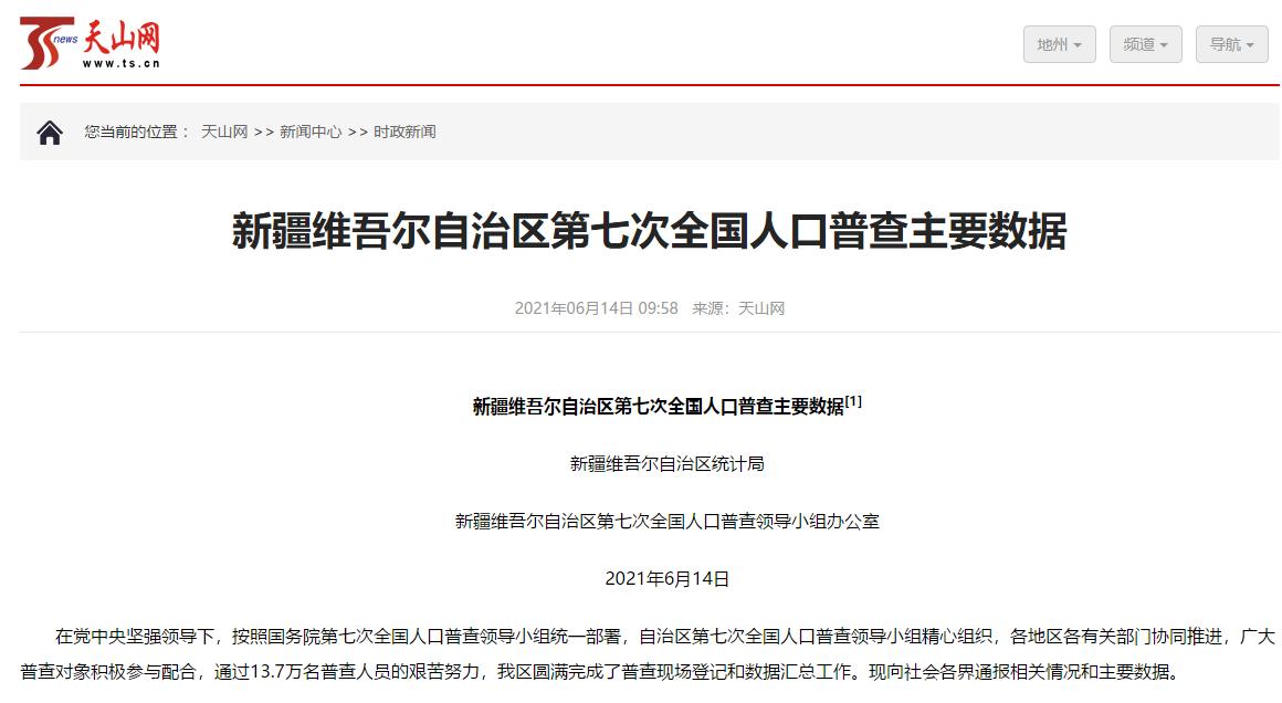 新疆维吾尔自治区第七次全国人口普查主要数据[1]